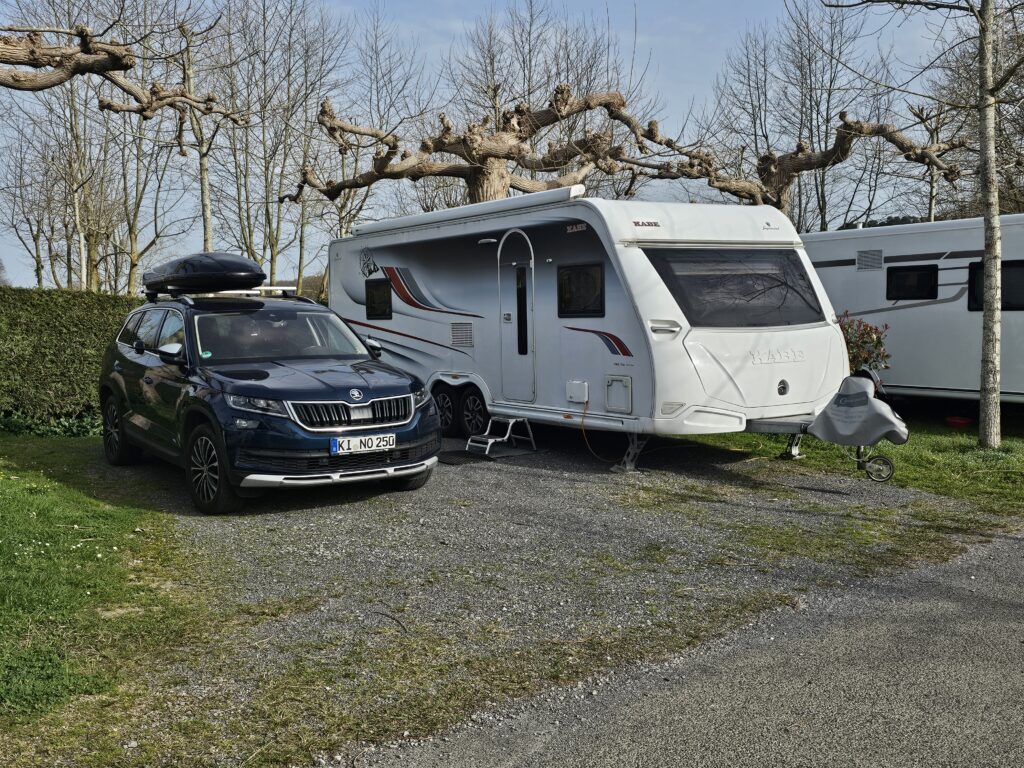 Eigentlich wollte ich hier 4 Tage bleiben; der Platz war aber sehr matschig und nicht eben, sodass ein Ausrichten in der Waage kaum möglich war… also ein Tag früher abreisen.